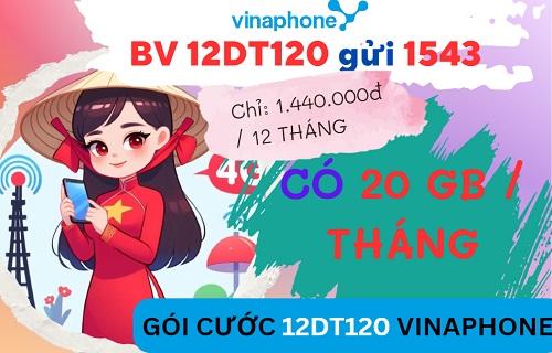 Gói cước 12DT120 Vinaphone được thiết kế cho tất cả khách hàng đang sử dụng dịch vụ di động trên cả nước. Kích hoạt gói ưu đãi này thành công, quý khách sẽ nhận được 20GB data cho mỗi chu kỳ 30 ngày. Đây là gói data dài kỳ đem lại cho người dùng liên tiếp 12 tháng thoải mái online trên di dộng. Để nắm chi tiết về tiết về gói dịch vụ này, mời các bạn cùng theo dõi nội dung bài viết dưới đây nhé!