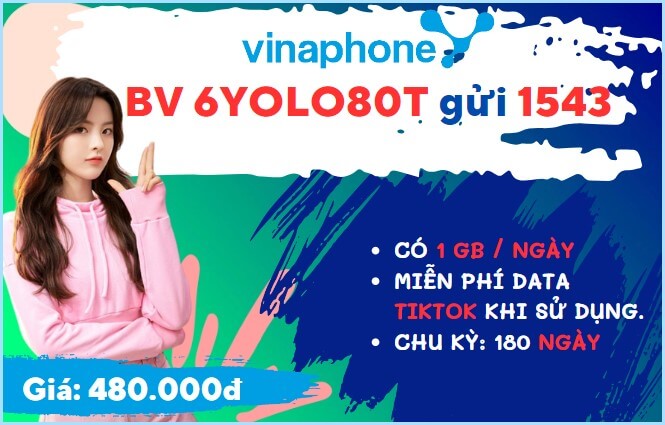 - Thuộc danh sách khuyến mãi và đáp ứng yêu cầu về tài khoản, thuê bao quý khách sẽ đăng ký gói cước 6YOLO80T Vinaphone thành công khá dễ dàng khi soạn tin: BV 6YOLO80T gửi 1543