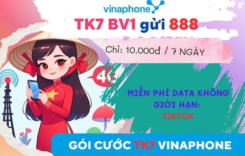 Nếu bạn đang tìm kiếm ưu đãi nhằm đáp ứng nhu cầu giải trí và sáng tạo suốt cả tuần cùng ứng dụng Tiktok, đừng bỏ qua gói cước TK7 Vinaphone. Chỉ với 10.000đ và tin nhắn gửi theo cú pháp: TK7 BV1 gửi 888, bạn sẽ nhanh chóng sở hữu gói dịch vụ này, thoải là truy cập mạng xã hội Tiktok suốt 7 ngày.